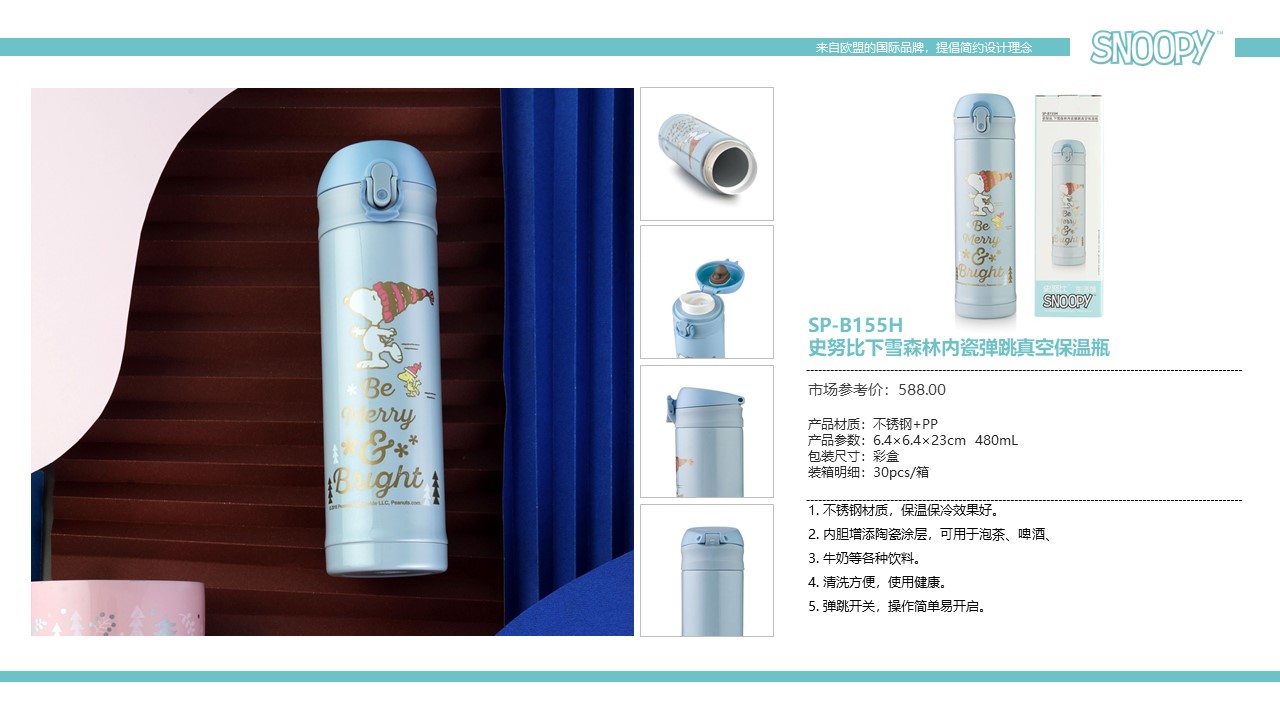 SP-B155H 史努比下雪森林内瓷弹跳真空保温瓶