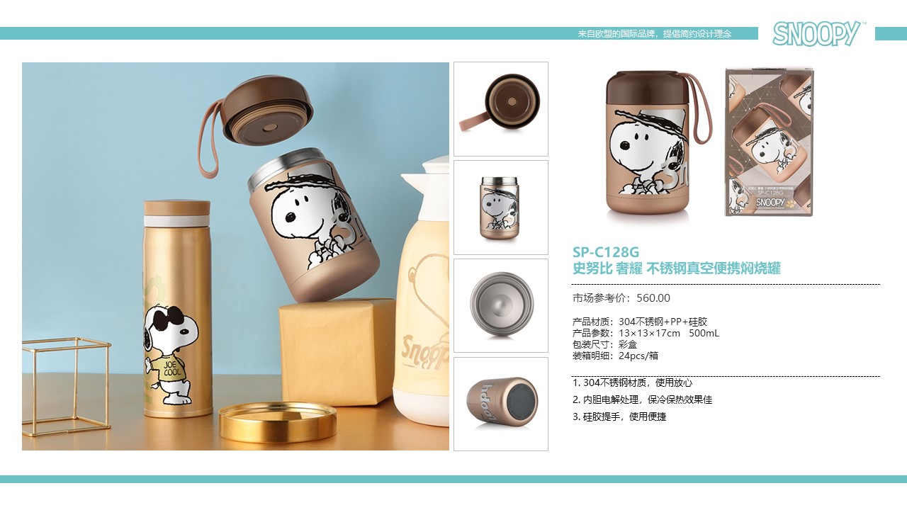 商品名称:SP-C128G 史努比 奢耀 不锈钢真空便携焖烧罐