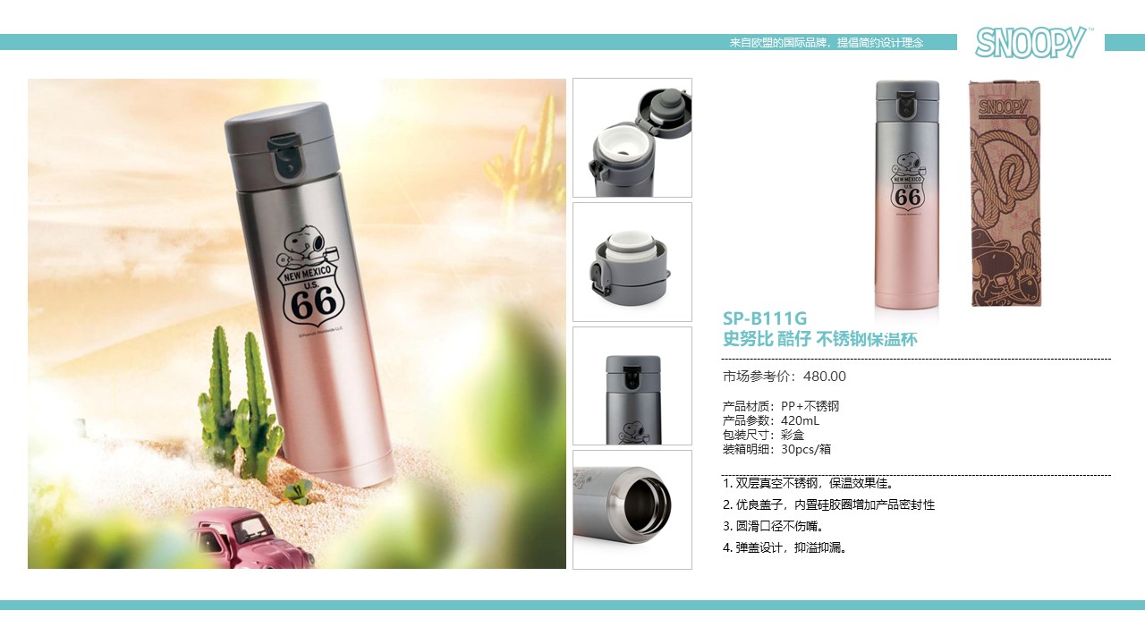 商品名称:SP-B111G 史努比 酷仔 不锈钢保温杯