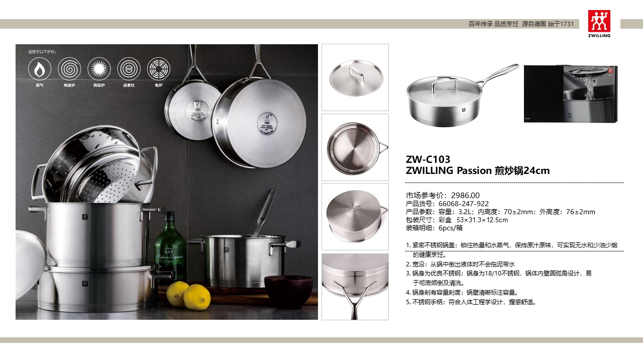 商品名称:ZW-C103 ZWILLING Passion 煎炒锅24cm