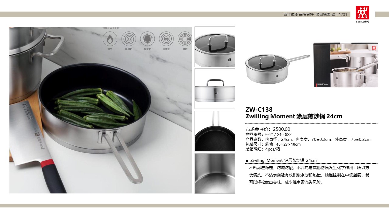 商品名称:ZW-C138 Zwilling Moment 涂层煎炒锅 24cm